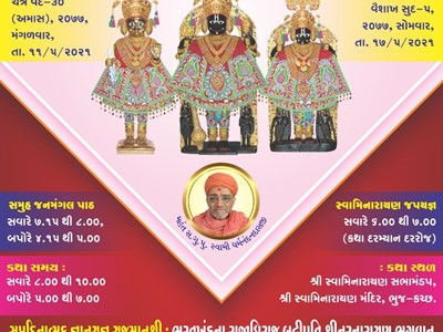 Shree Narnarayan Dev Bhuj will be celebrating 198 years this week. In these difficult times we are facing, the Patotsav this year will be held online. Please join us in watching online for the katha and the below special events.